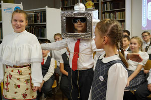 Состояла она из нескольких раундов и в каждом раунде были вопросы, касающиеся сказок, писателей-классиков, знаменитых цитат писателей, даже надо было узнать