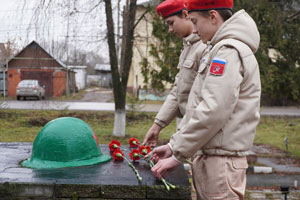Юнармейцы, активисты МАОУ СШ №2 г.Ворсма в этот день возложили цветы на пл. Победы к Стеллам Героев и памятнику "Родина-Мать"