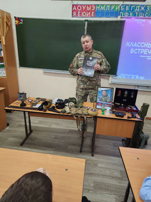 В рамках Дня Героев Отечества в 4 "Б" классе, кл. руководитель Севастьянова А А., состоялась встреча ребят с интересным человеком Зарубиным Денисом Леонидовичем.